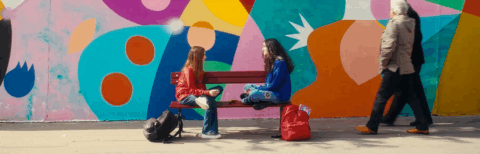 Illustration réalisée par l'agence d'un homme et une femme courants nus sur un fond jaune, symbolisant la créativité et l'audace